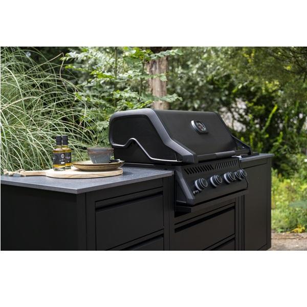 Vestavný gril Napoleon BIR 32 v atraktivním černém matném provedení se čtyřmi hlavními hořaky a zadním hořákem pro rotiserii.