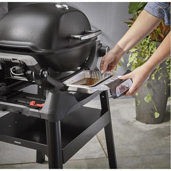 - Snadné a rychlé čištění díky odkapávací misce na tuk umístěné pod grilovací vanou. Miska je přístupná z čela.