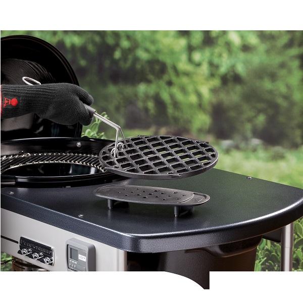 Odkládací plocha Weber pro bezpečné ukládání a umístění horkých GBS komponentů, grilovacích desek, tálů a košů na grilování.